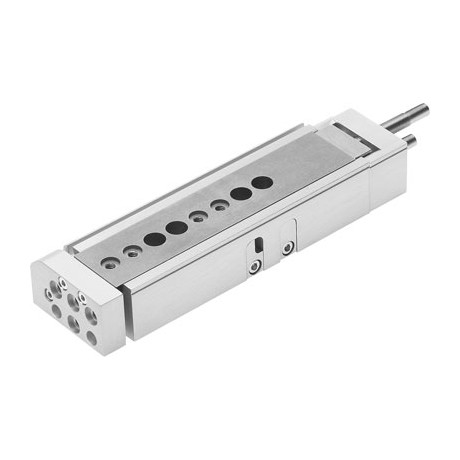 mini slide DGSL-10-50-PA With position sensing, highly accurate, durable ball-cage guide, flexible damping on both sides without metallic end position (P). Stroke=50 mm, Adjustable endposition range/front length=27,5 mm, Adjustable endposition range/rear length=20 mm, Piston diameter=12 mm, Operating mode of drive unit=Yoke