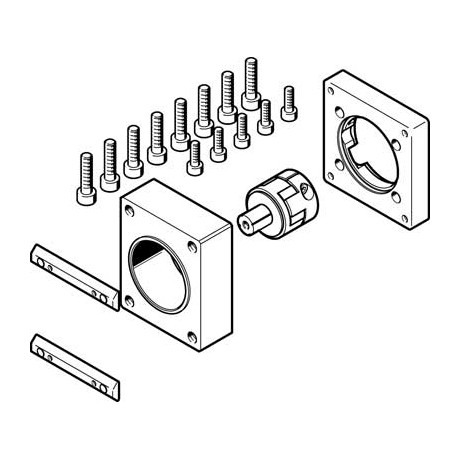 axial kit EAMM-A-R38-57A Suitable for electric drives. Assembly position=Any, Storage temperature=-25 – 60 °C, Relative air humidity=0 – 95 %, Protection class=IP40, Ambient temperature=-10 – 60 °C